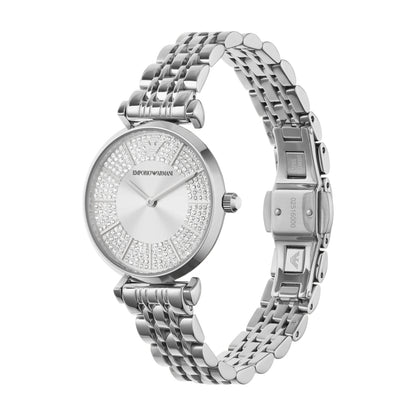 Emporio Armani 32mm Gianni T-Bar Silver CZ Dial Link Watch