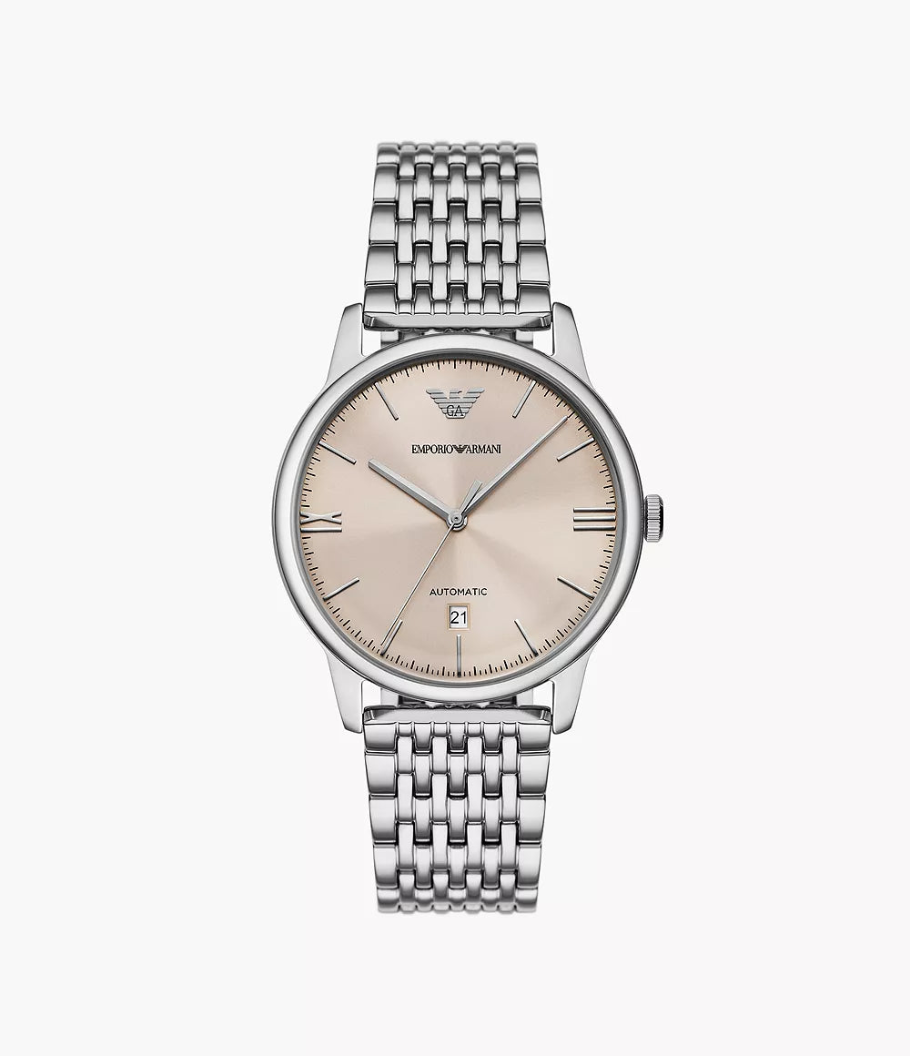 Emporio Armani 39mm Automatic White Dial Stainless Steel Bracelet Watch
