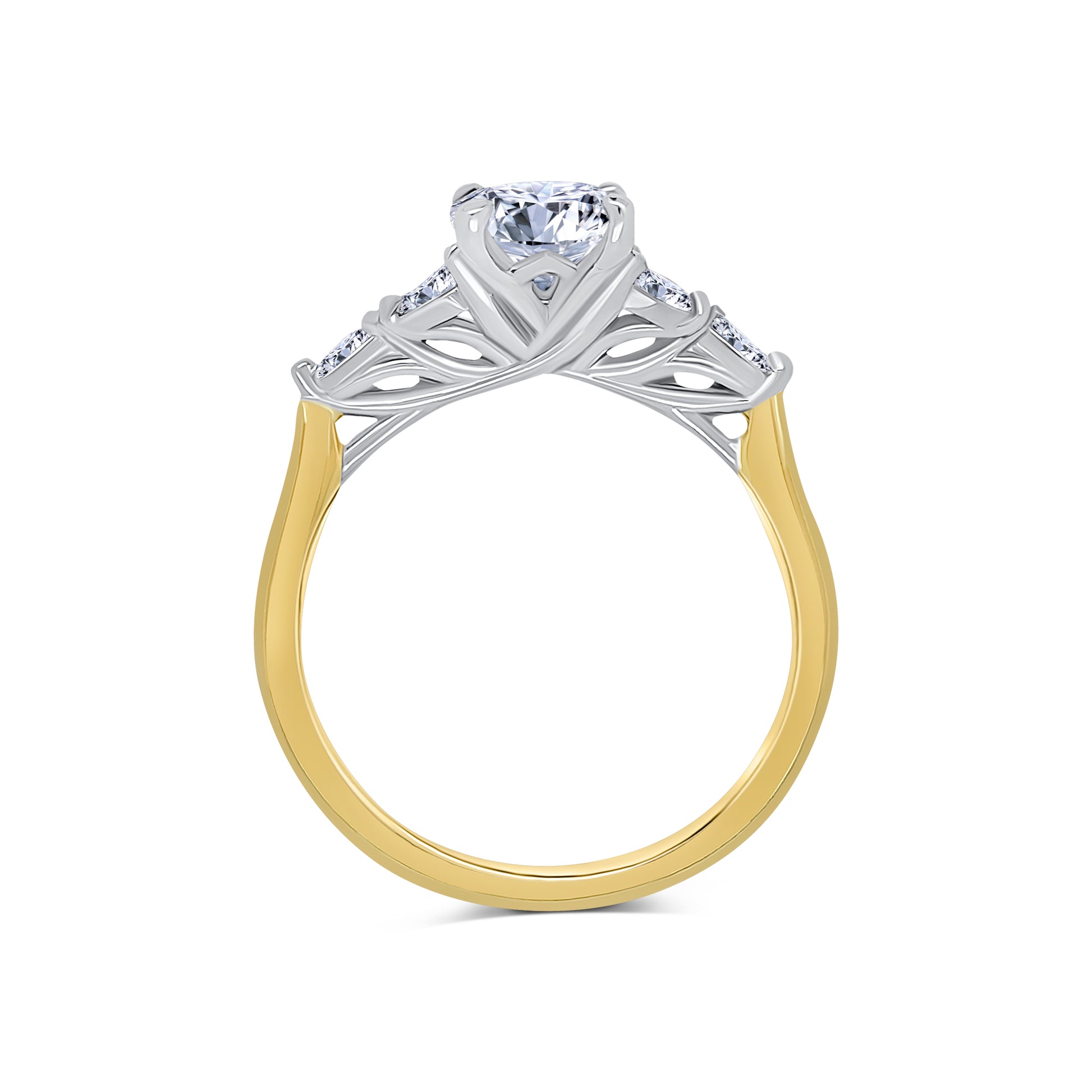 A truly unique and delicate design that holds elegance and lots of character. This ring features a dazzling IGI certified 1.51ct brilliant round cut laboratory grown diamond, but gets its added character from the laboratory marquise diamond detailing along the band. This ring features a trefoil styled shape made of marquise diamonds on either end of the centre stone, that continues through to the band for a subtle shoulder setting. This adds a unique level of dazzle and style across the ring. The delicately places marquise rings add 0.10ct of diamonds in total. Presented on a 750 hallmarked yellow gold band with platinum mounts.