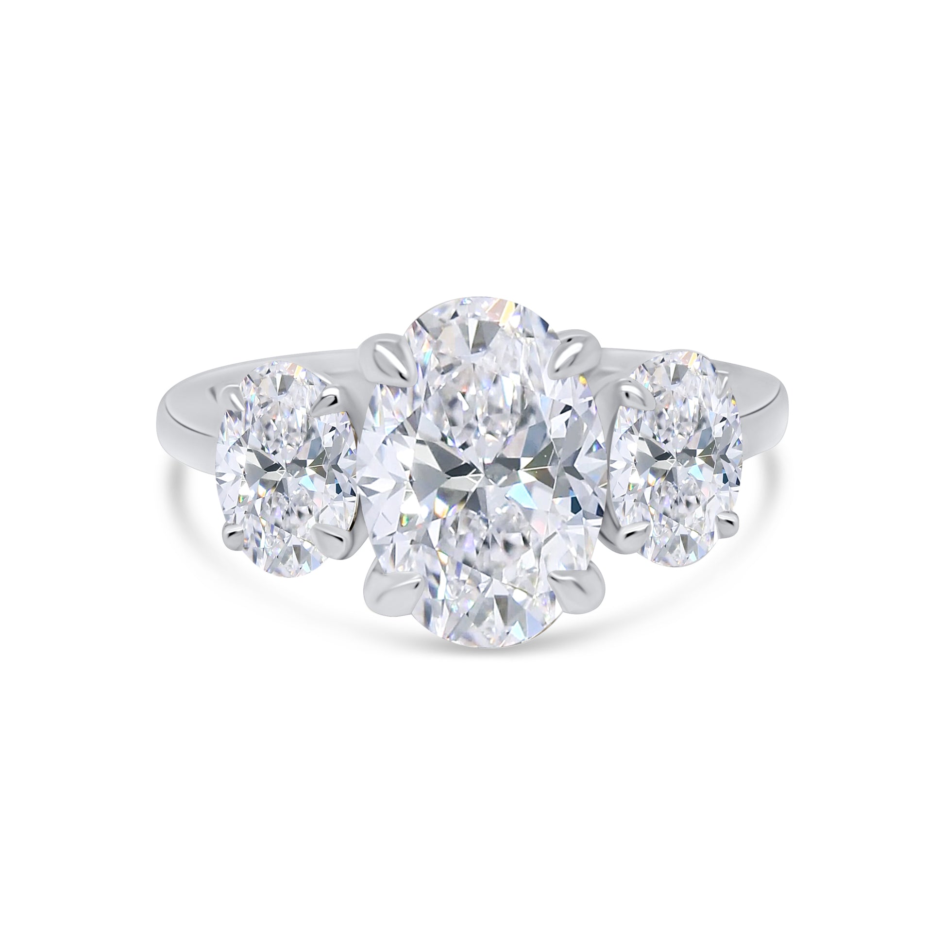 Laboratory Grown, Oval Three Stone, Platinum Band Diamond Ring, 3.00ct
