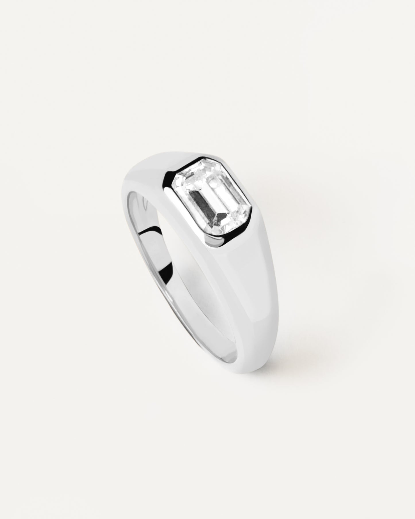 The Octagon Shimmer Stamp silver Ring is a thick ring made of 925 sterling silver set with one octagonal-cut cubic zirconia on the center. This ring creates timeless staple that goes beyond basic jewellery. Perfect for gifting or simply elevate your everyday look!