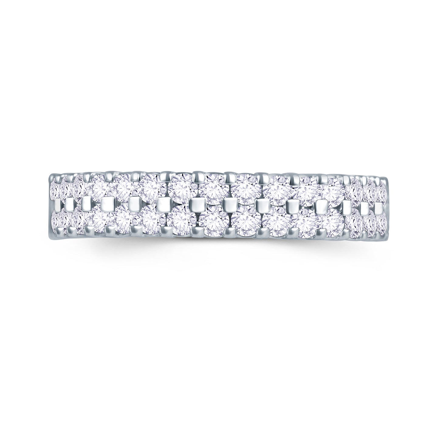 This stunning two row claw set diamond ring has a total carat weight of 0.50 with a 50% spread across the ring and is set in a 3.5mm Platinum band.