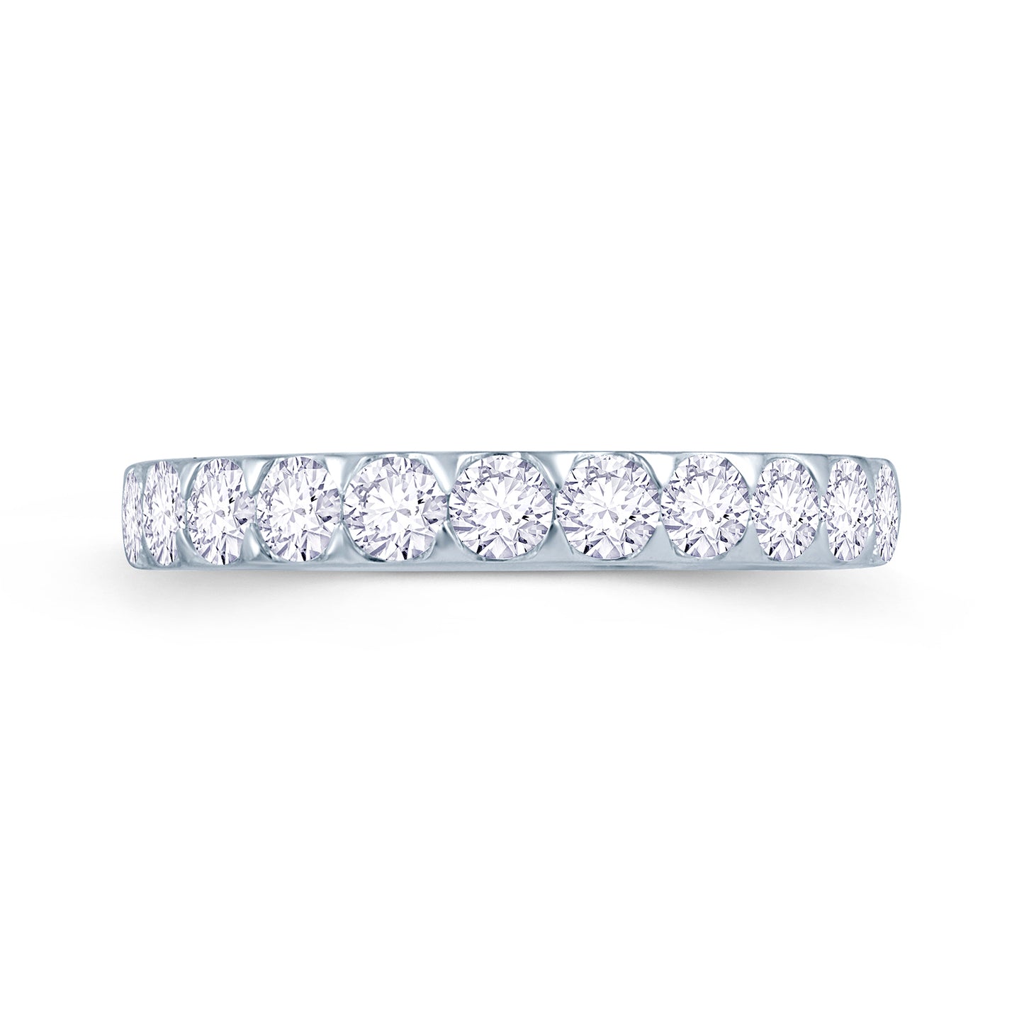 This exquisite diamond wedding band is triangle claw set, allowing each diamond to have a surrounding claw. This band is holding 0.75ct of brilliant cut diamonds with a 50% spread in a 3mm wide hallmarked 950 platinum band.