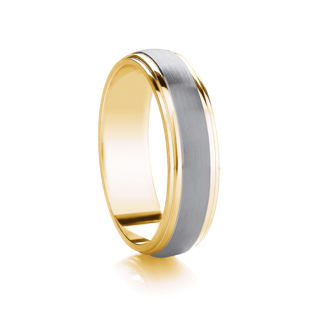 Platinum & 18ct Yellow Gold Ribbed, Matte & Polished Medium 5mm Wedding Band