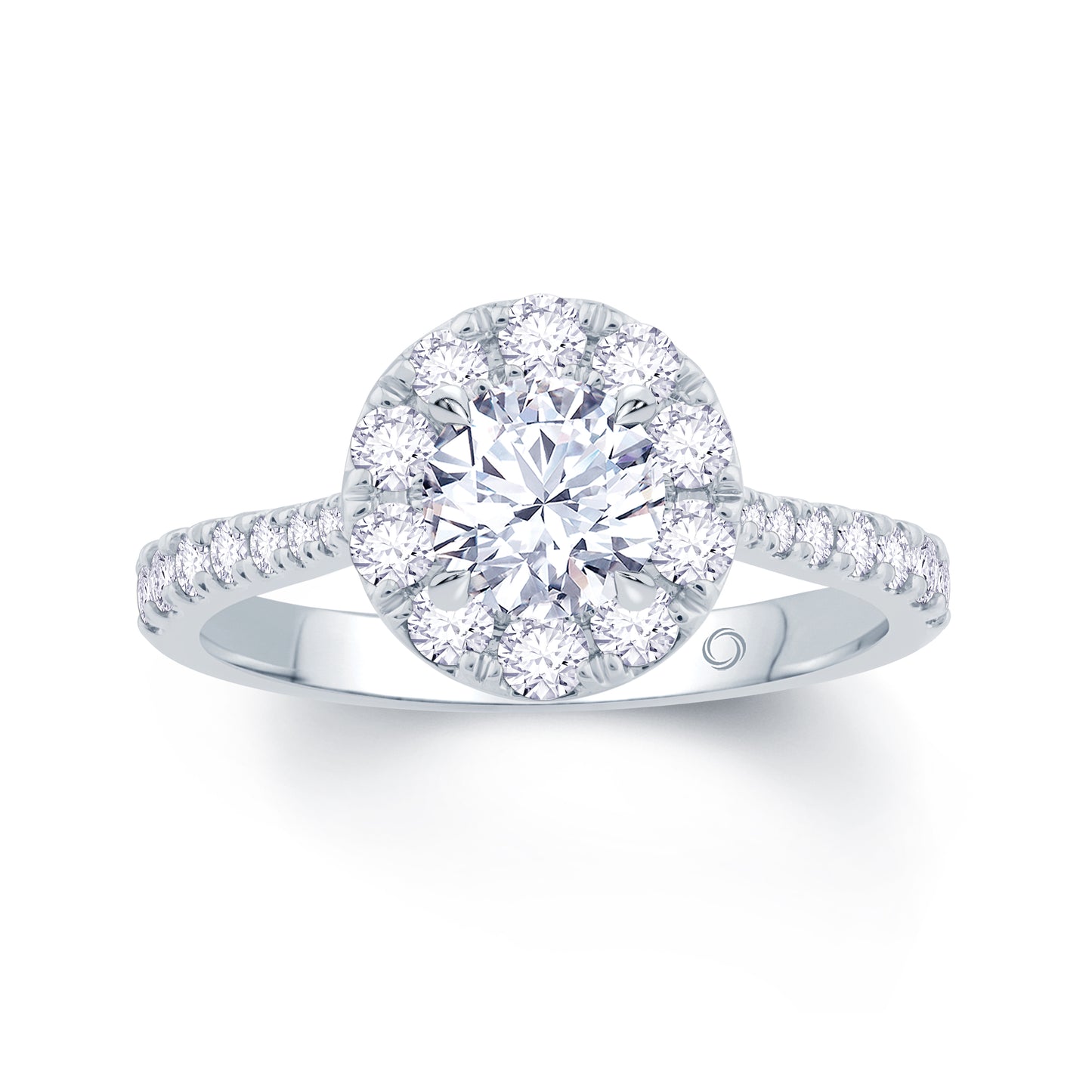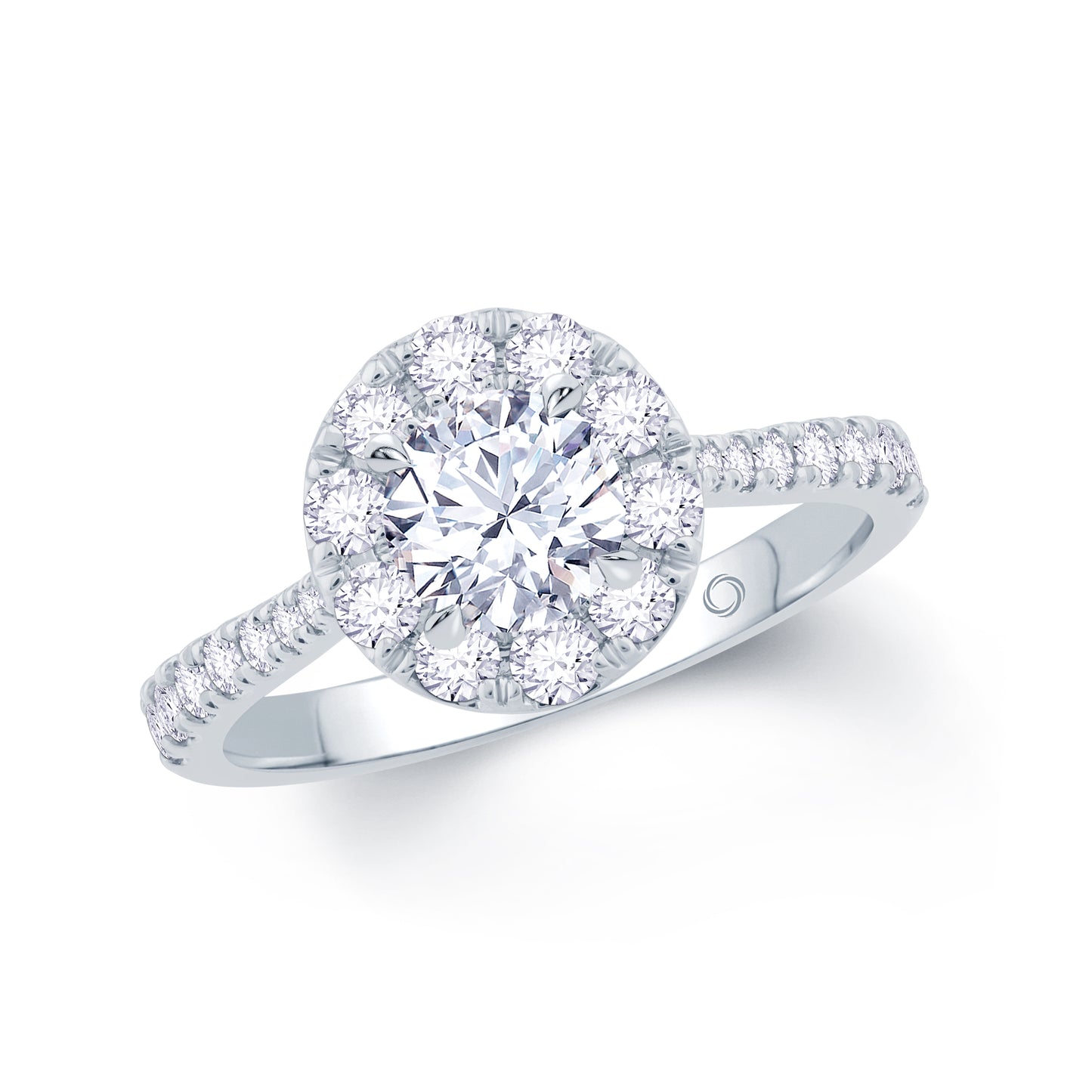 Platinum Brilliant Round & Halo, Shoulder Set Diamond Ring 0.75ct