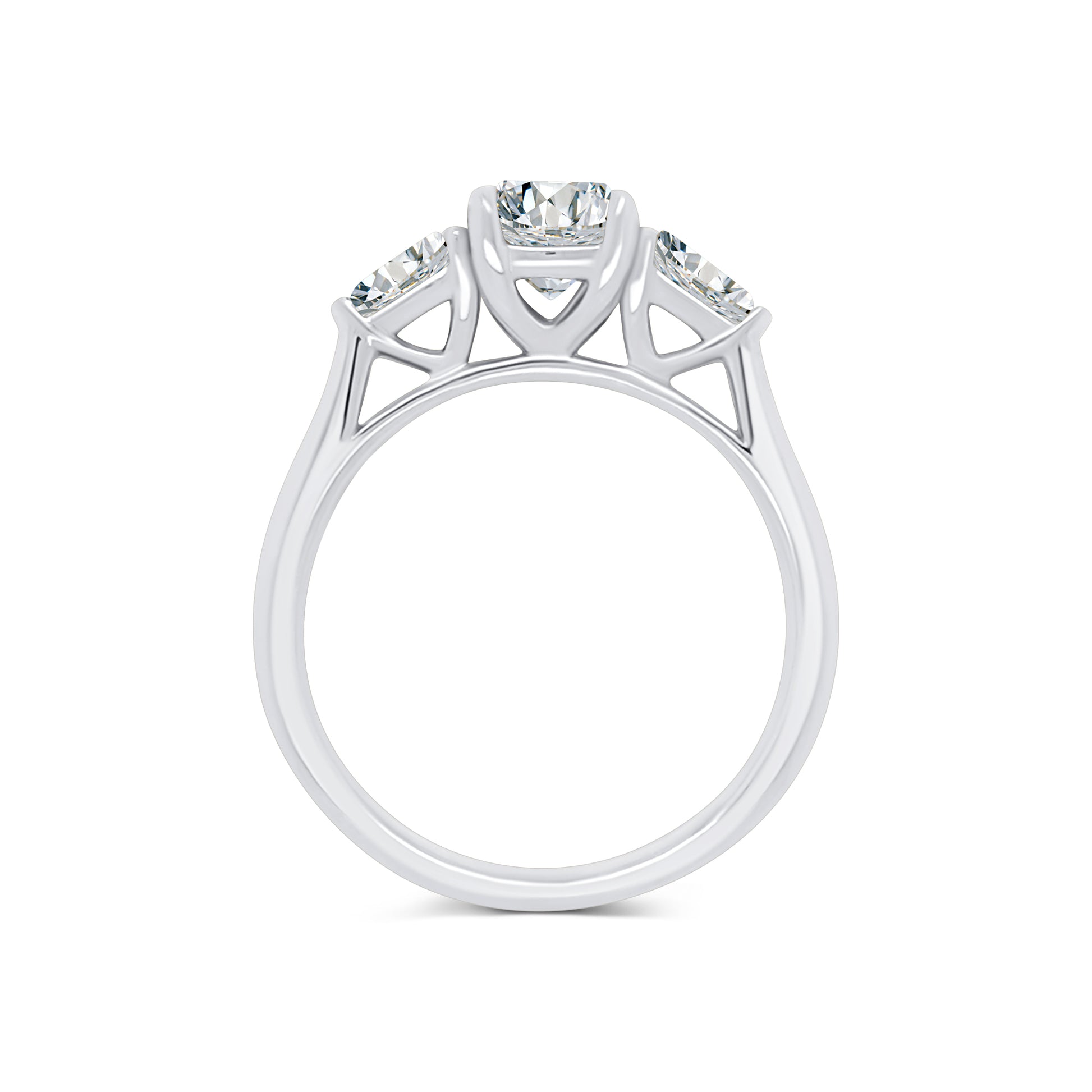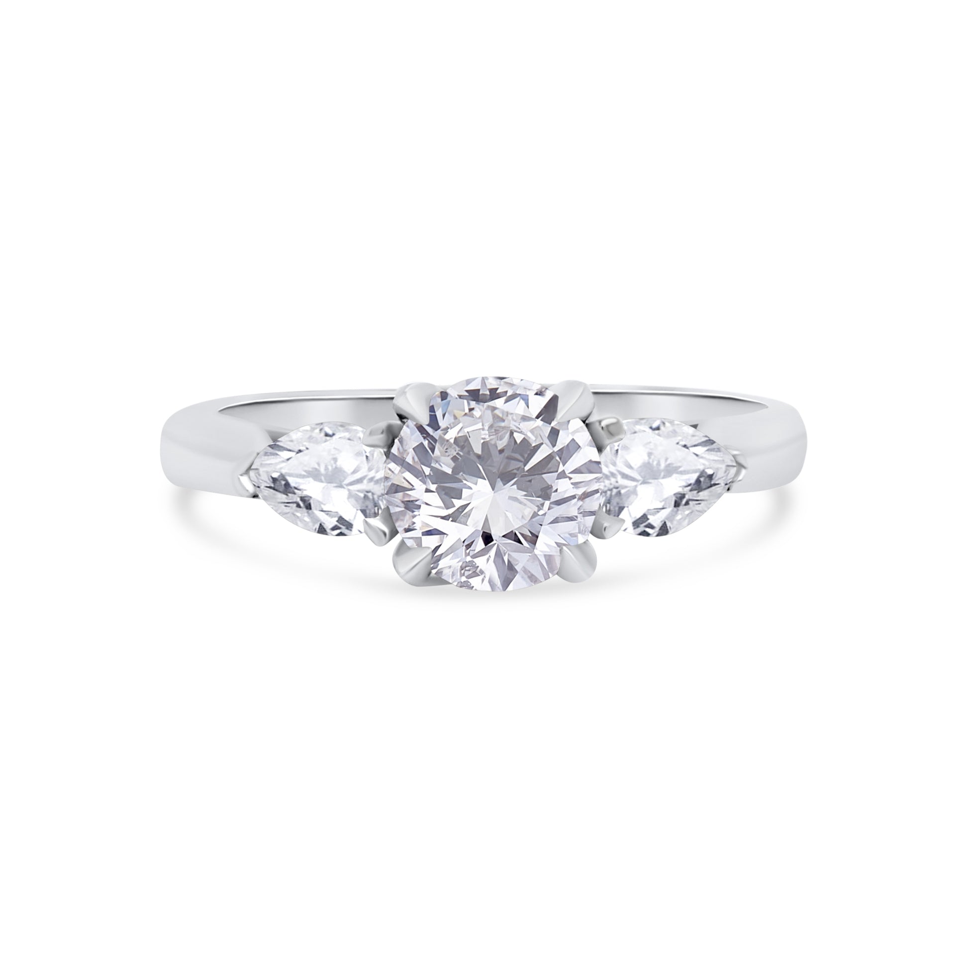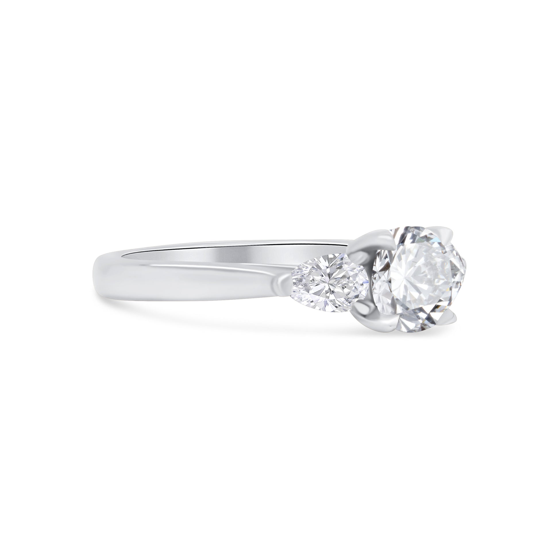 Platinum Brilliant Round & Pear Talon Claw Three Stone Diamond Ring, 1.50ct