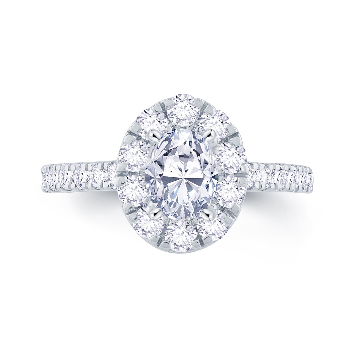 Platinum Oval & Halo Diamond Set Band Ring, 0.85ct