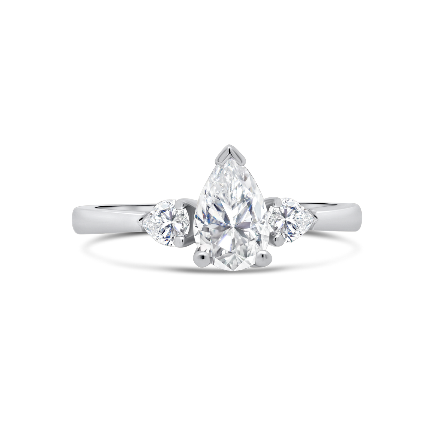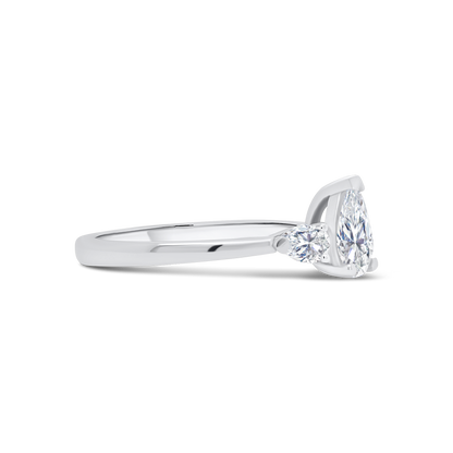 Platinum Pear Three Stone Diamond Ring, 0.88ct