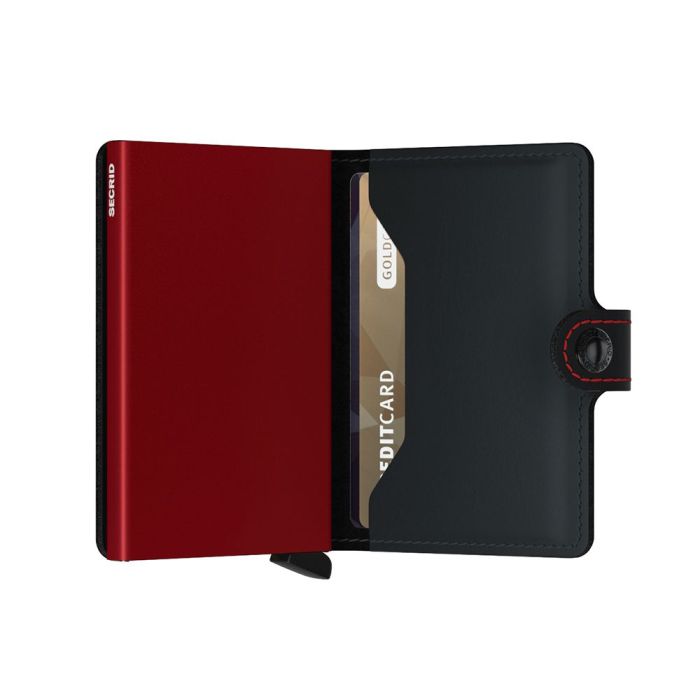 Miniwallet Matte Black & Red is corrected-grain leather, made in Holland from European cowhide. For more information on leather characteristics, please refer to the Secrids informational leather page.