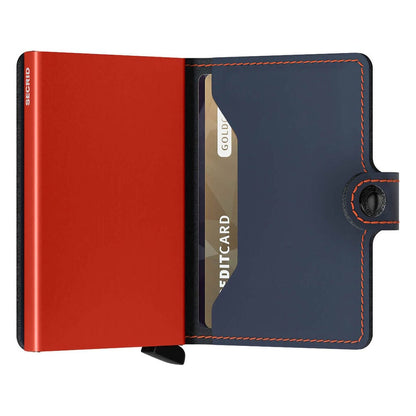 Miniwallet Matte Night Blue & Orange is corrected-grain leather, made in Holland from European cowhide.