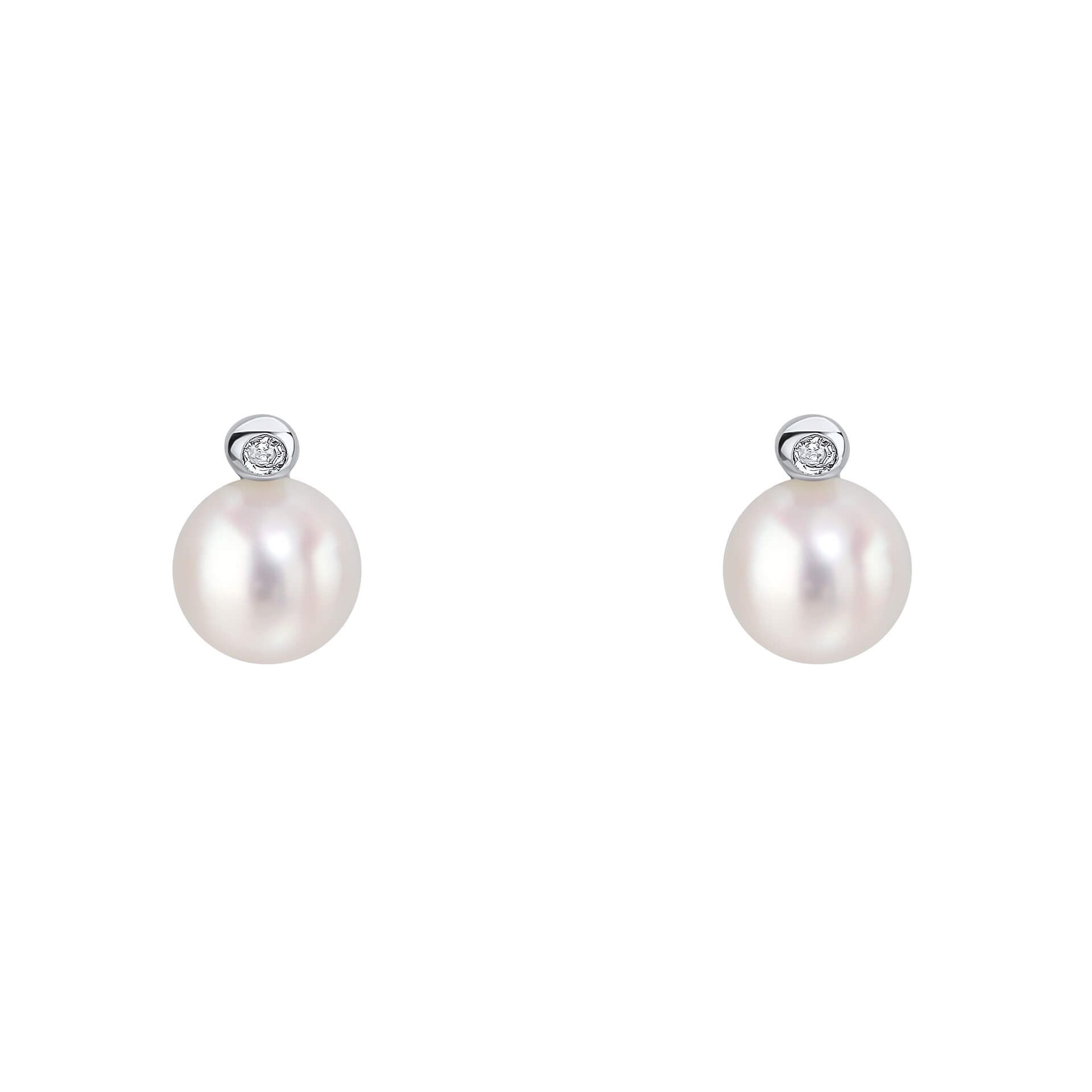 Sterling Silver Children's Pearl & Diamond Stud Earrings