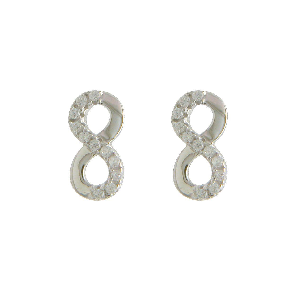 Sterling Silver Infinity Half CZ Set Stud Earrings