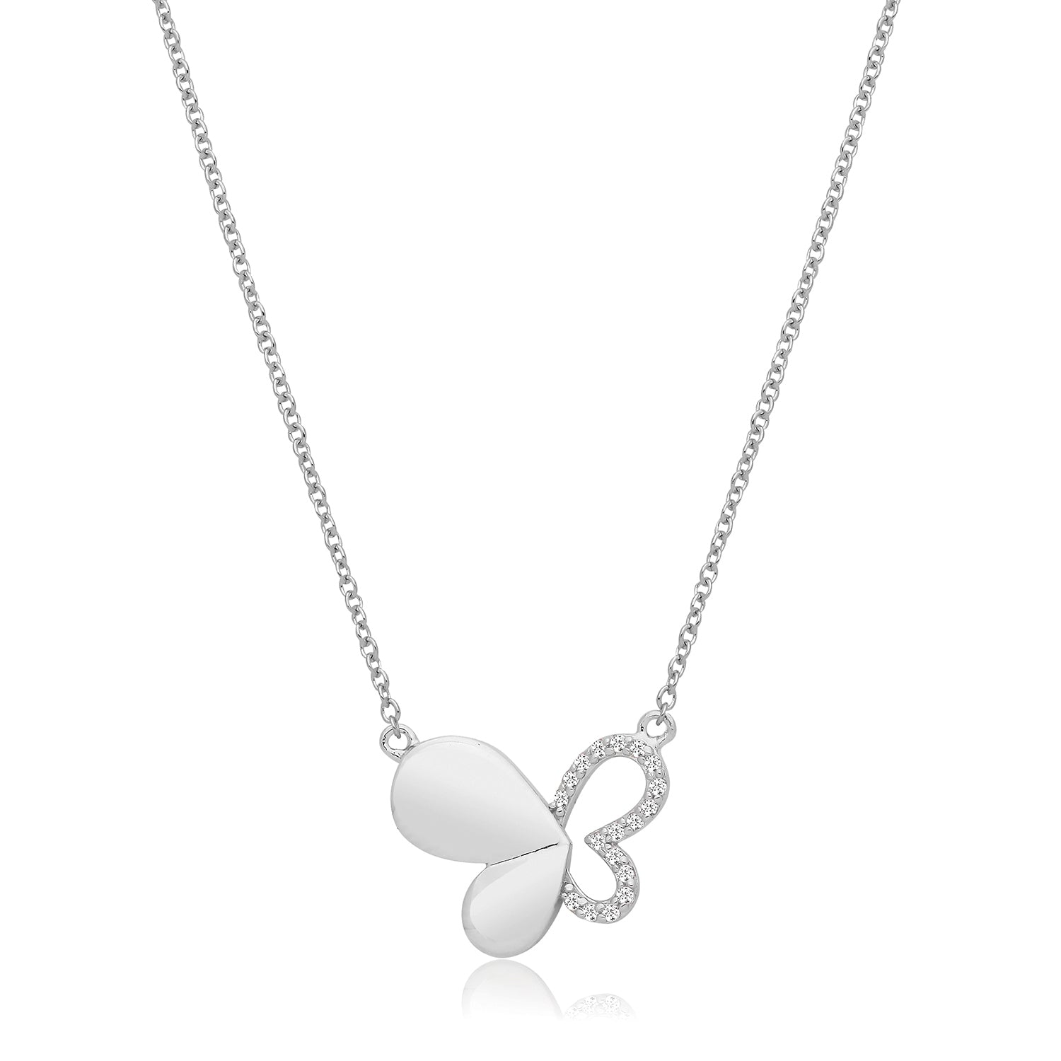 Sterling Silver Open Solid Butterfly CZ Pendant Necklace