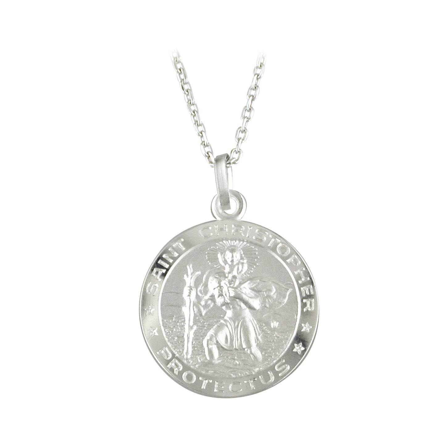 The  St. Christopher's Medal and Chain Necklace is a thoughtful and symbolic present for anyone embarking on a journey. St. Christopher is recognized as the patron saint of travellers and his medal is believed to offer protection while on the road. Crafted in 925 Sterling Silver this round medal pendant is presented on an 18" trace chain.