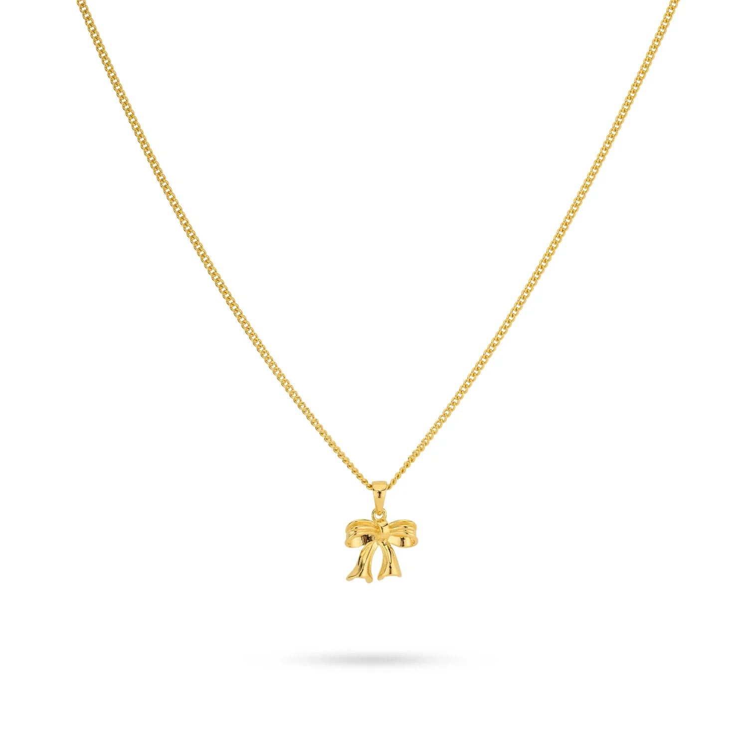 Crafted in 18ct yellow gold plated sterling silver, this beautiful classic necklace has a cute bow pendant, which makes it perfect for layering or wearing solo!