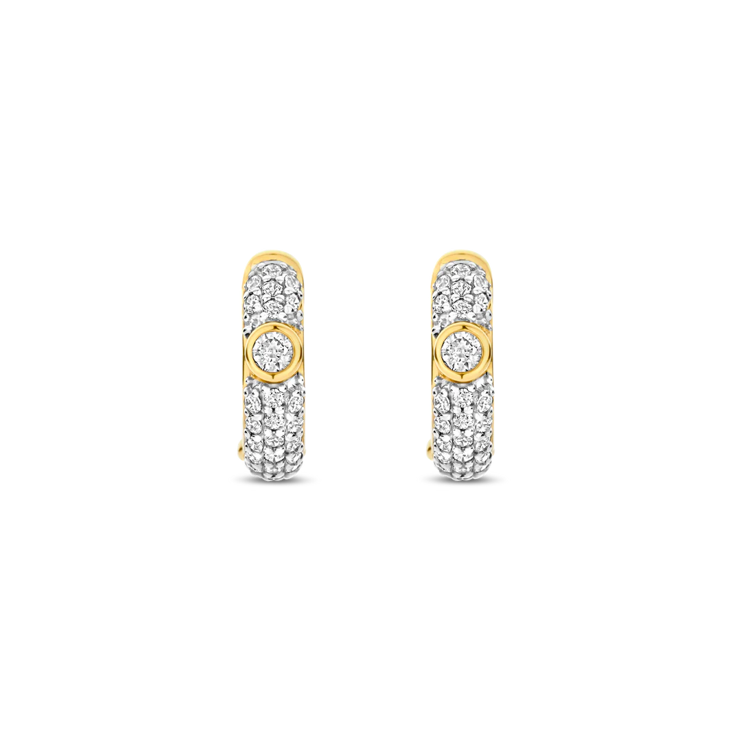 These TI SENTO Gold-Plated Silver Pavé Hoop Earrings 78019ZY are a radiant fusion of modern glamour and classic elegance. Crafted from premium 925 sterling silver, these hoops are lavishly adorned with pavé-set cubic zirconia, creating an endless shimmer effect. A bezel-set solitaire cubic zirconia, encased in warm yellow gold plating, takes centre stage, adding a striking contrast and touch of brilliance. Designed to make an impact, these hoops are perfect for day-to-night styling—offering just the right amount of sparkle for a refined daytime look or a dazzling evening statement.