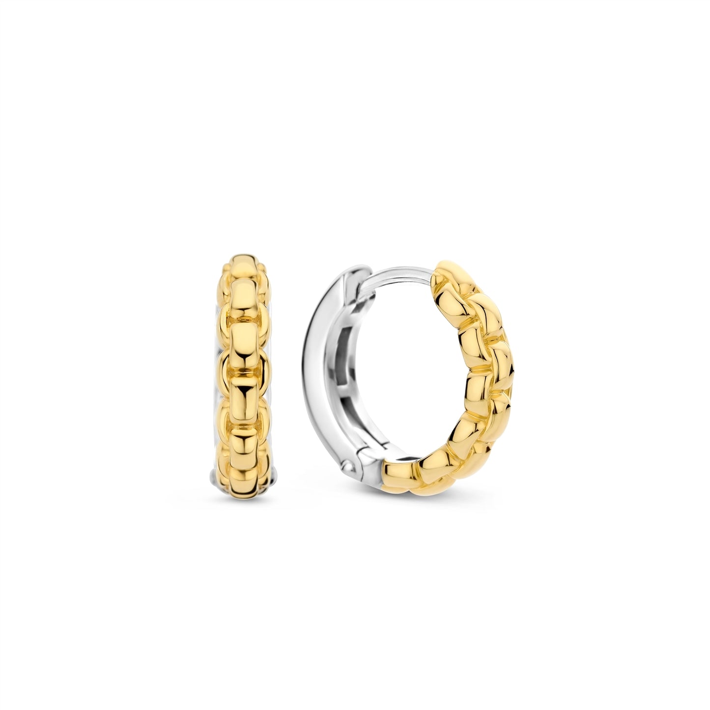 These TI SENTO gold-plated hoop earrings 7961SY flaunt an iconic interlinked design with our signature link shape. Crafted from premium 925 sterling silver and adorned with a lustrous yellow gold-plated finish, these small hoops are a captivating blend of elegance and modernity. Versatile and timeless, these hoops can seamlessly transition from day to night. The intertwined links add a touch of sophistication, making them the perfect signature accessory to elevate any ensemble.