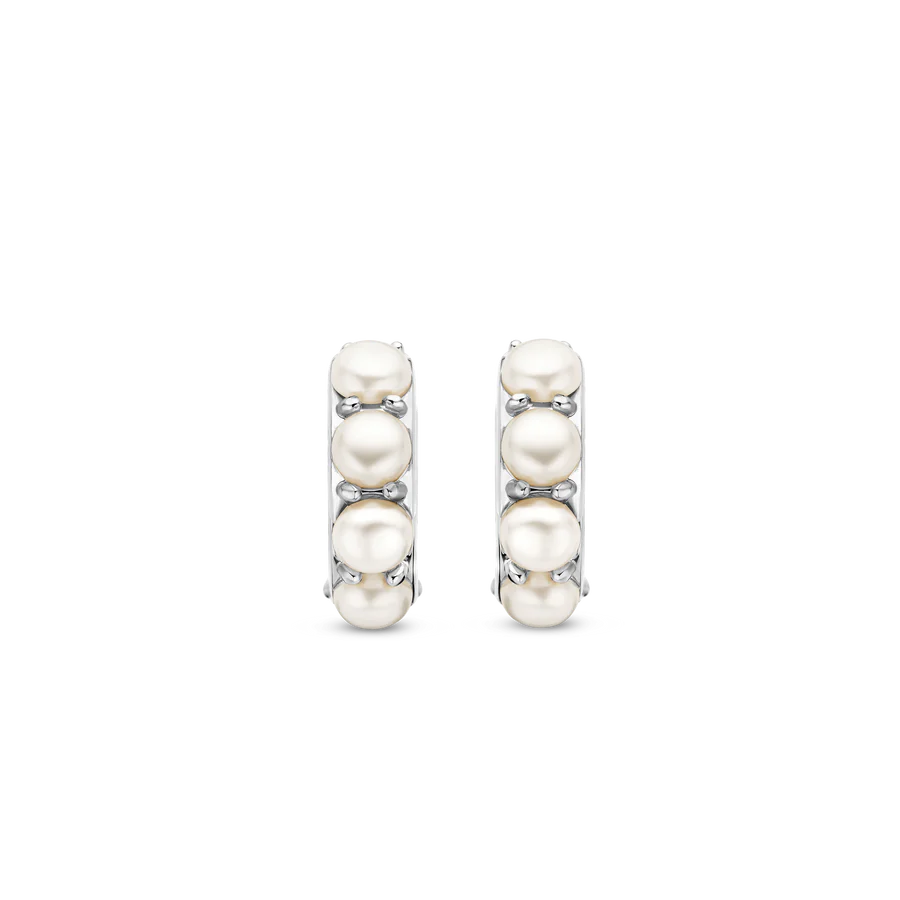 These silver hoops are delicately adorned with a row of handset pearls, creating an elegant and refined accessory. Meticulously crafted from premium 925 sterling silver, they are coated with precious platinum to protect them from daily wear and keep them luminous. The luminous pearls, carefully arranged along the entire hoop, add a touch of grace and beauty. Elevate your style with our pearl-adorned hoop earrings, perfect for mixing and matching with other silver pieces to create a curated and personalised look that captures the essence of understated elegance.