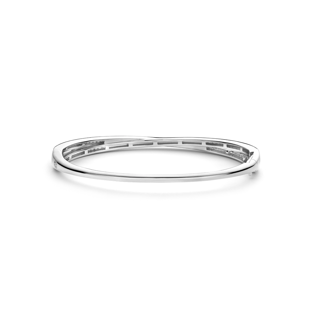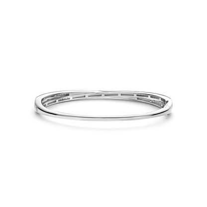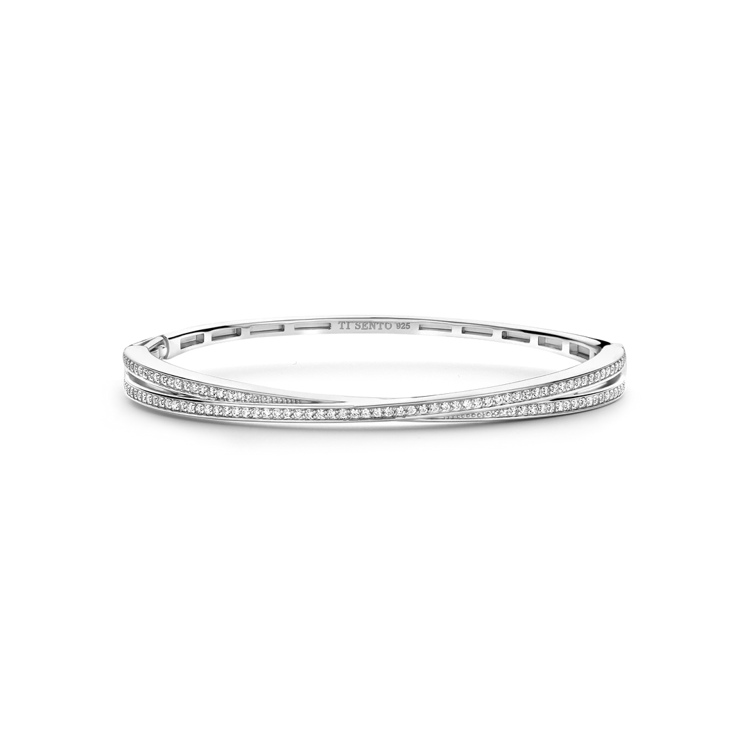 The TI SENTO Silver Bangle Bracelet 23072ZI is a timeless piece crafted from premium 925 sterling silver with luminous platinum plating for lasting elegance. Featuring an intertwined design, one polished silver bangle is paired with another adorned in pavé-set cubic zirconia, creating a harmonious balance of shimmer and sophistication. Perfect for any occasion, its clean silhouette exudes effortless elegance. Hypoallergenic and nickel-free, it ensures comfort and quality.