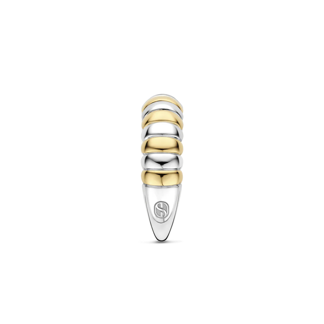 Embrace timeless sophistication with this TI SENTO - Milano Ring 12383ZY, a striking fusion of modern design and classic elegance. Crafted from 925 sterling silver, this ring showcases a captivating interplay of mirror-polished platinum and radiant yellow-gold plated links, creating a rhythmic flow that dances around the finger. Crowned with a refined panel of pavé-set white cubic zirconia, it sparkles with understated brilliance, adding a touch of glamour to any look.