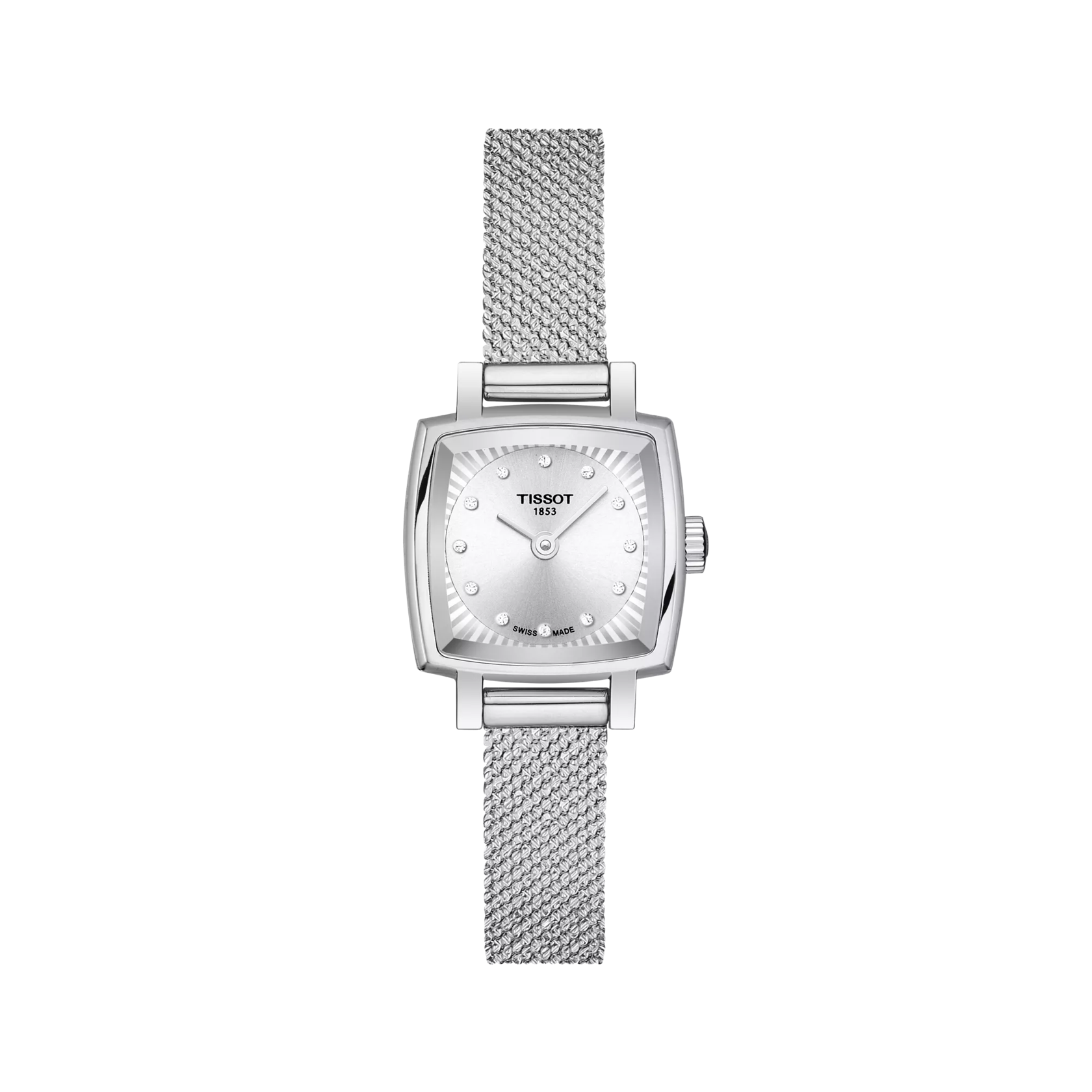 Tissot 20mm Lovely, Silver Square Diamond Set Dial, Ladies Mesh Watch